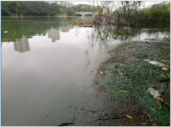 近年來(lái),隨著污染的長(zhǎng)期累積,西河水體逐漸不堪重負(fù),富營(yíng)養(yǎng)化嚴(yán)重,水質(zhì)呈劣V類,水域的自然生態(tài)系統(tǒng)、生物多樣性和良性的食物鏈遭到破壞,耐污能力很強(qiáng)的藍(lán)藻肆意生長(zhǎng),而藍(lán)藻因表面被包裹膠狀的多糖類物質(zhì)難以被魚類攝食,不能形成食物鏈,于是藍(lán)藻爆發(fā)成害,水體伴有異味。