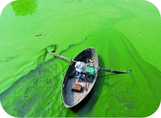 ? ? ? ? ? ? ? ? ? -藍藻(藍細菌)是“制氧菌”,喜歡靠陽光和水里的無機鹽(像化肥)瘋狂繁殖,形成水華。